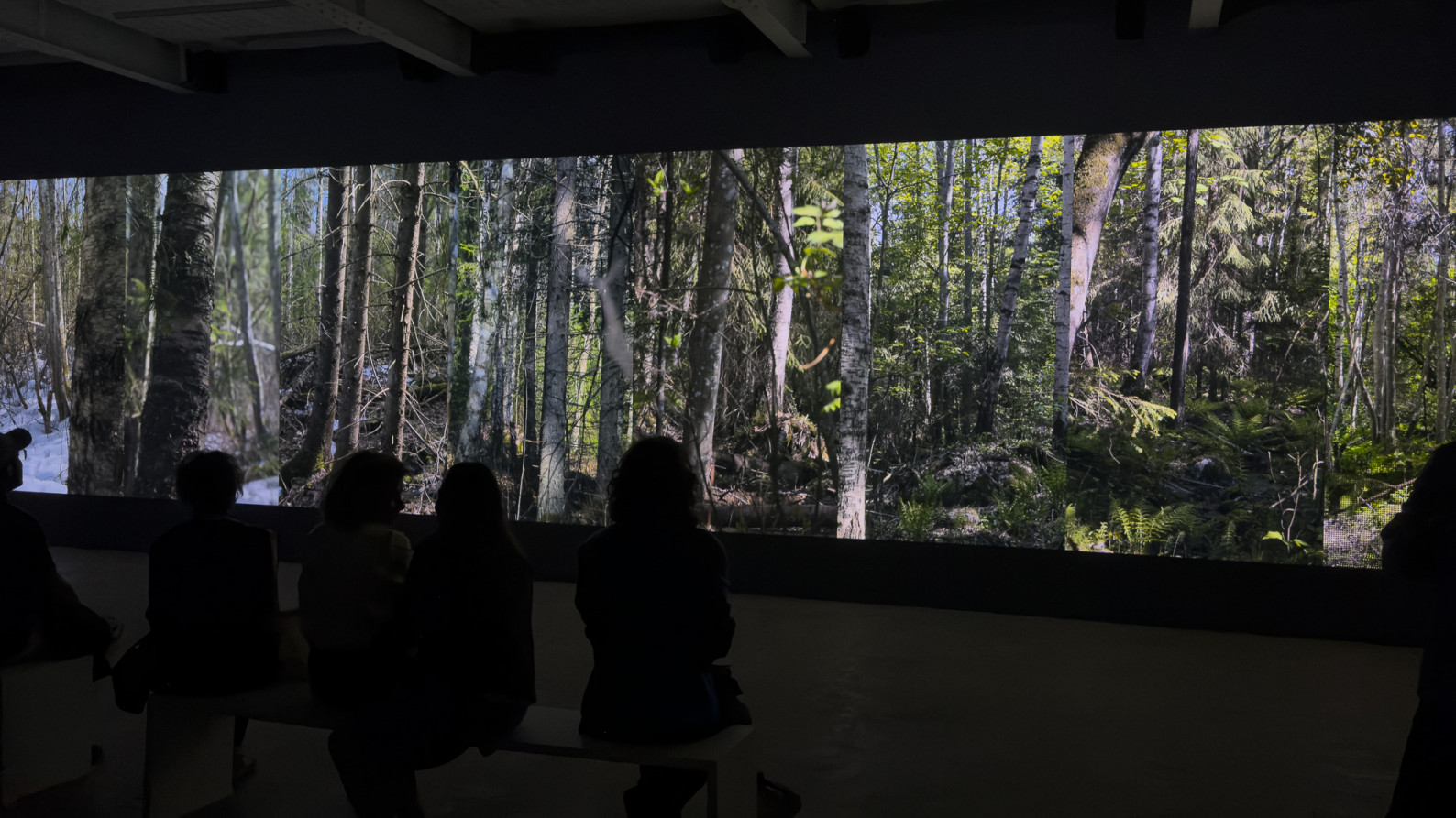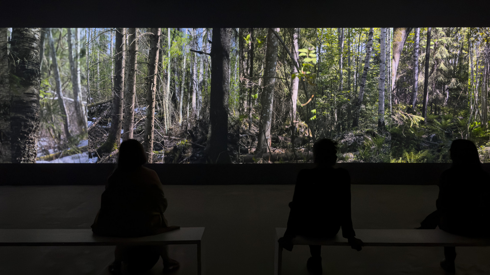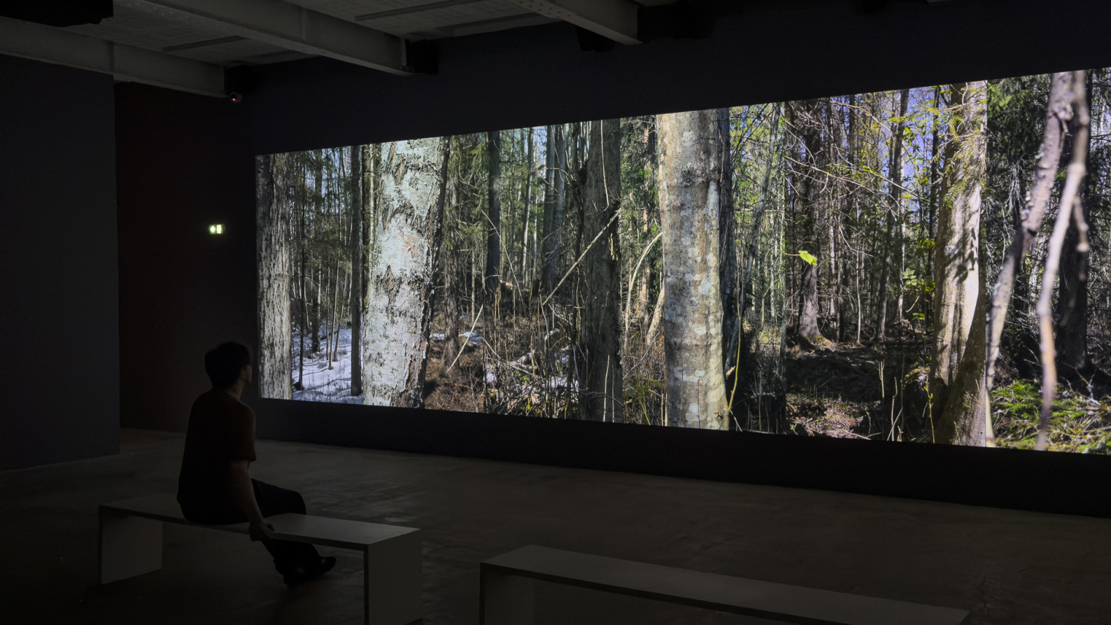 The spatiality of the forest is approached in the installation through eight passages, each of which enters the tract of forest. At the start, the initial images of all passages together constitute a unified landscape. The camera then begins to approach each framed area, breaking the landscape and opening up eight separate passages into the forest.